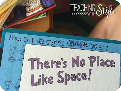To make it extra easy for the kids, I write the AR level, point total, and quiz number on the inside of each book. When students are ready to take the quiz, the information they need is readily available.